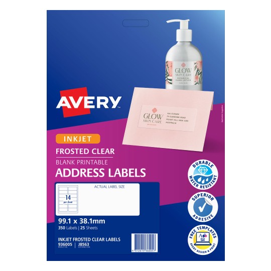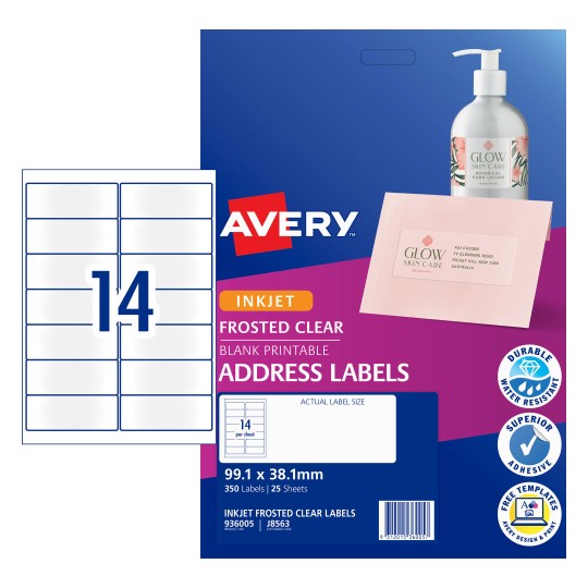 Avery Frosted Clear Address Labels provide a modern, professional finish to your mail. These labels are ideal for adding elegance to dark coloured and patterned envelopes especially for use at corporate events and for wedding invitations. With the Avery Quick Peel™ feature, they are easy to use. Simply bend back the sheet and the label edge ‘pops-up’ making it quick to peel and apply to your envelopes.