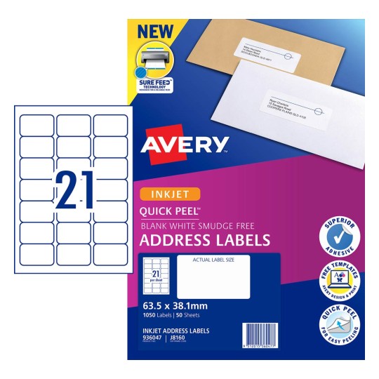 With the Avery Quick Peel™ feature, they are easy to use. Simply bend back the sheet and the label edge ‘pops-up’ making it quick to peel and apply to your envelopes.