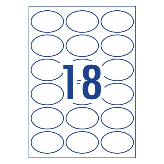 Matt Oval Labels 63.5 x 42.3 mm, Laser, Inkjet, White