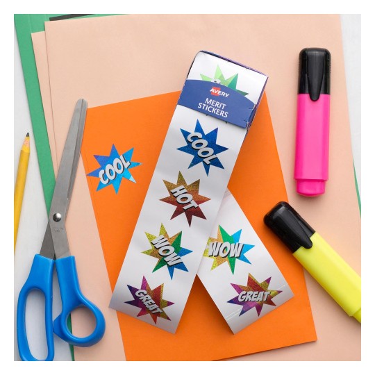Avery Merit Stickers are great for rewarding good work and behaviour at home or in the classroom. There’s a fantastic range of bright, fun merit stickers for teachers and parents to choose from and the kids will love to collect.