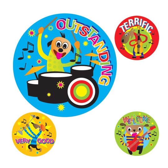 This pack of 6 mixed designs of fun animated cartoon band members contains 102 colourful glossy round stickers, perfect for reward charts that kids will be proud to receive.