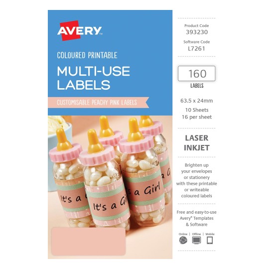 Avery Coloured Labels are suitable for a variety of uses around the home and for parties and events. Available in handy A5 size packs, they come in a range of soft colours and sizes so you can be as creative as you want with your labelling ideas and match a specific colour label to your colour schemes.