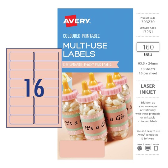 It’s never been easier to design your own labels using our FREE software, Avery Design & Print online where you can find a whole host of images and templates ready to use. You can also create your own by adding text or design to the label before printing out on your laser or inkjet printer. It’s so quick and easy.