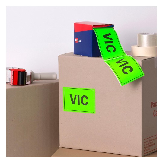 Available in a bright green fluoro rectangular shape of 100 x 150.4mm with 500 labels per roll. These pre-printed ‘VICTORIA’ state labels help to reduce the risk of lost products by visibly marking which packages need to be sent to which state.