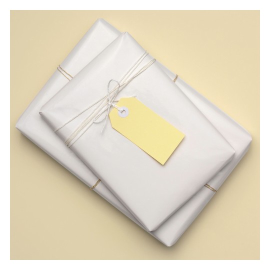- Durable white paper twine to compliment the white reinforced eyelet